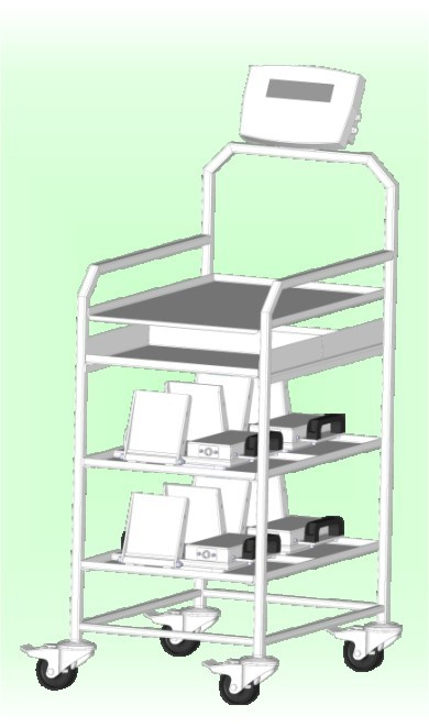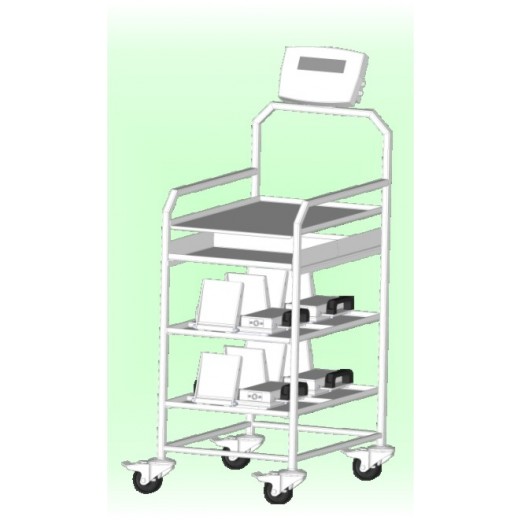 Căruciorul de transport pentru cântarul de pat facilitează mutarea cântarului.